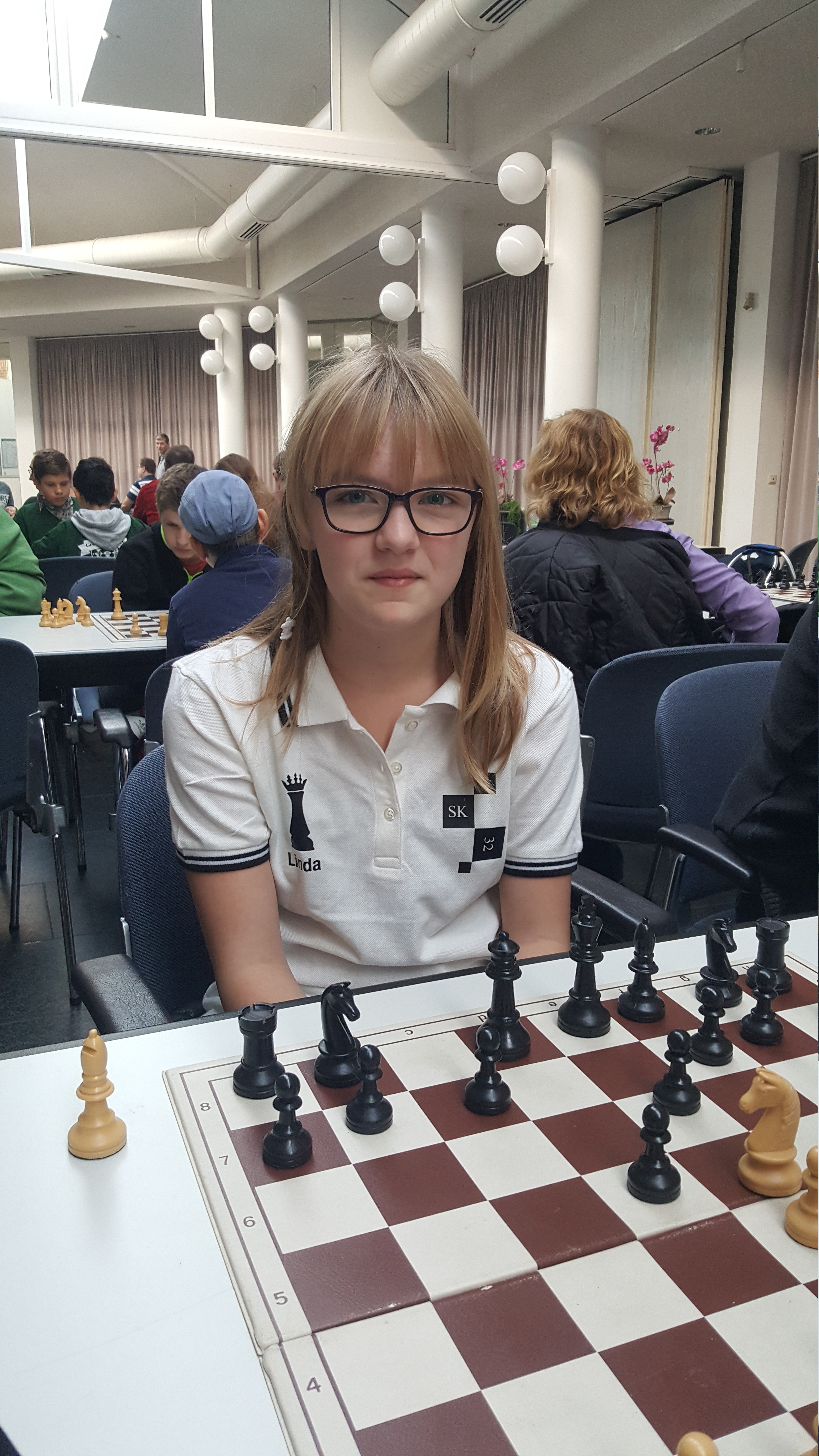 Gegnerin Agnes Stoer vom SV Mülheim-Nord lag mit einer DWZ von 1801 mehr als 500 Punkte über Linda. Doch nach einer durchwachsenen Eröffnung aber einem taktisch sehr starken Mittelspiel konnte die Kontrahentin schließlich in die Knie gezwungen werden. Eine Riesenüberraschung!